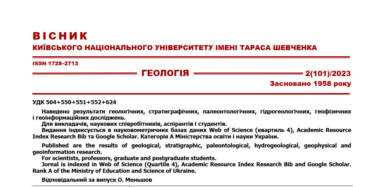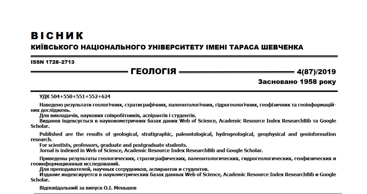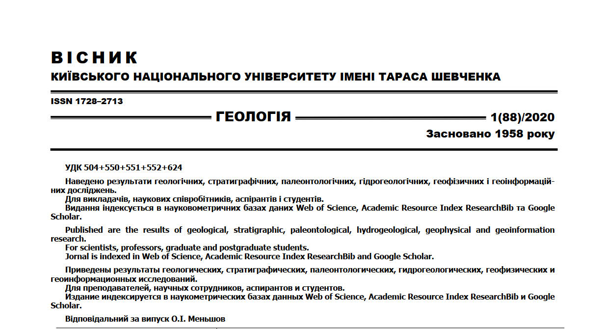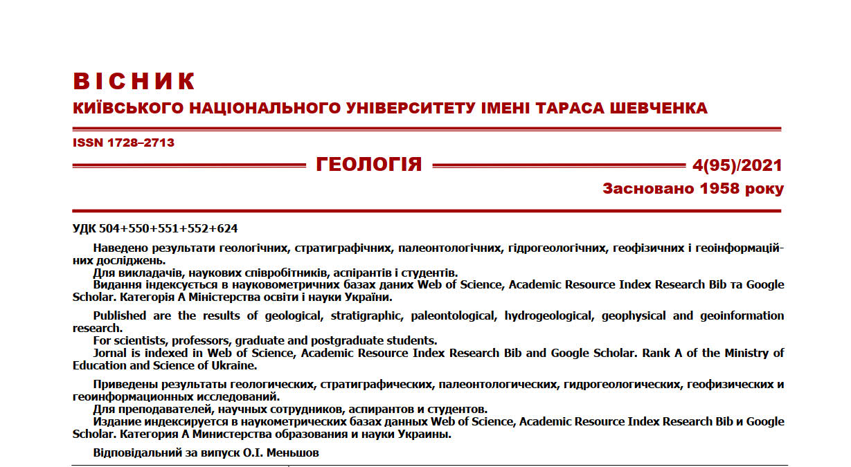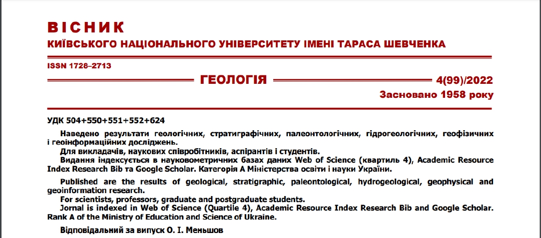 Вісник Київського національного університету імені Тараса Шевченка. Геологія