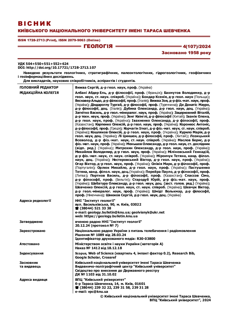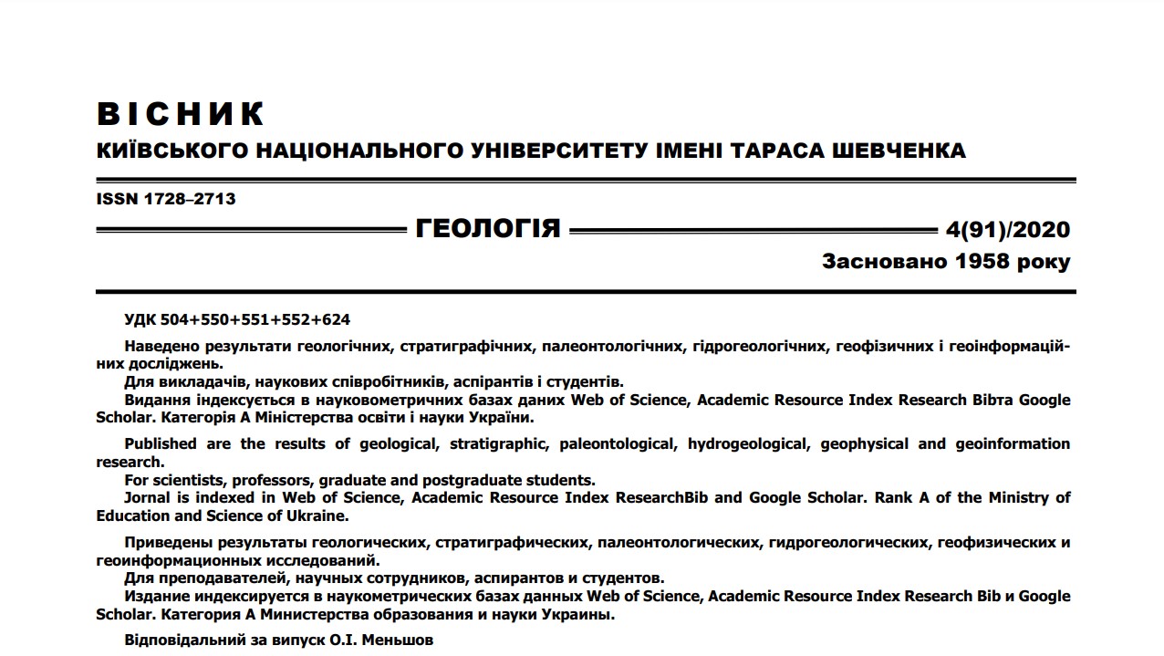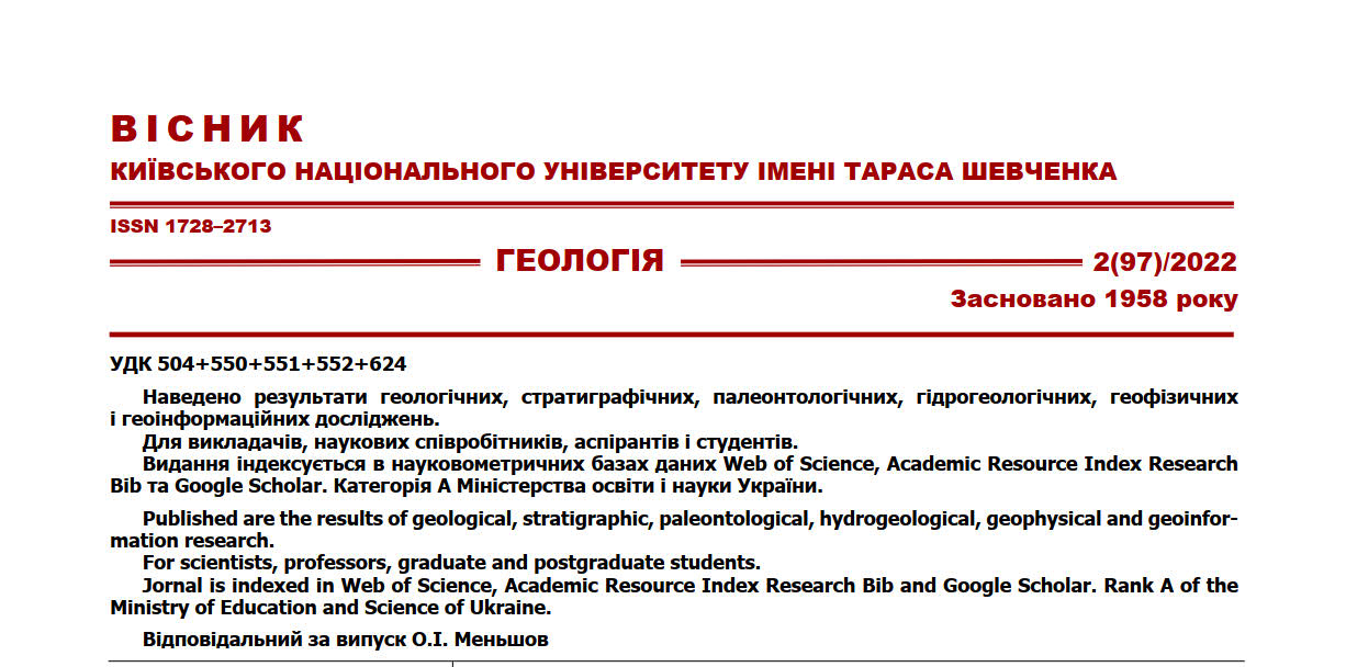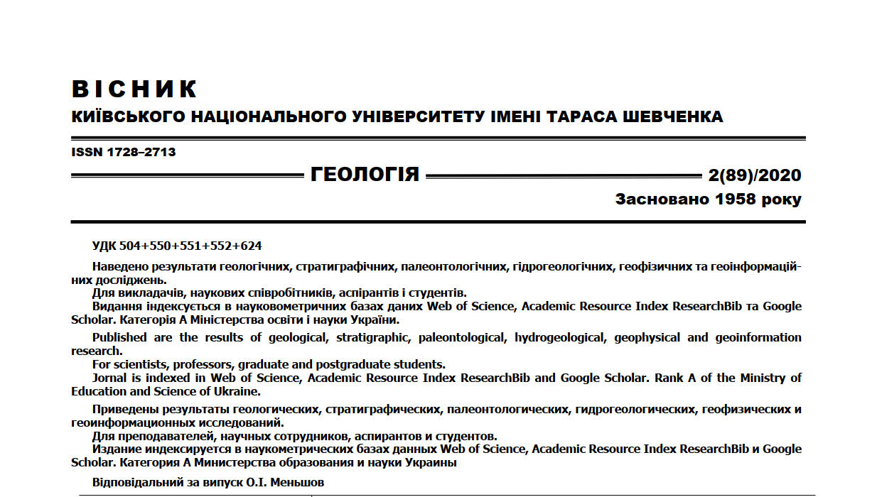 Вісник Київського національного університету імені Тараса Шевченка. Геологія