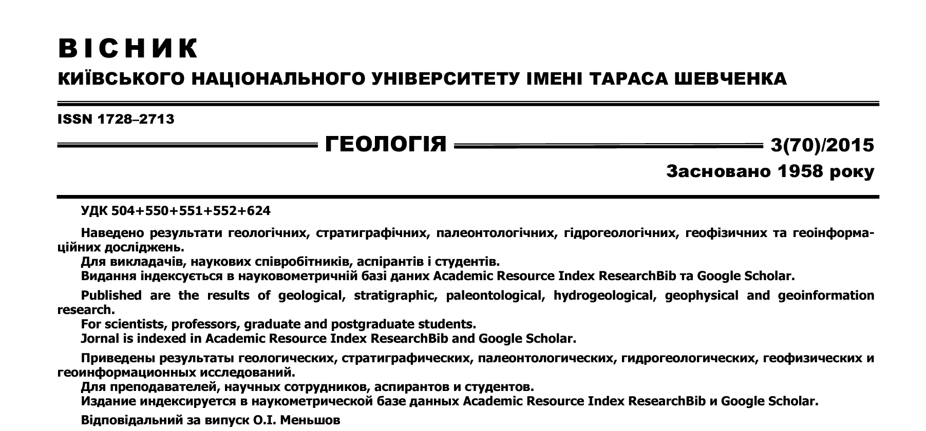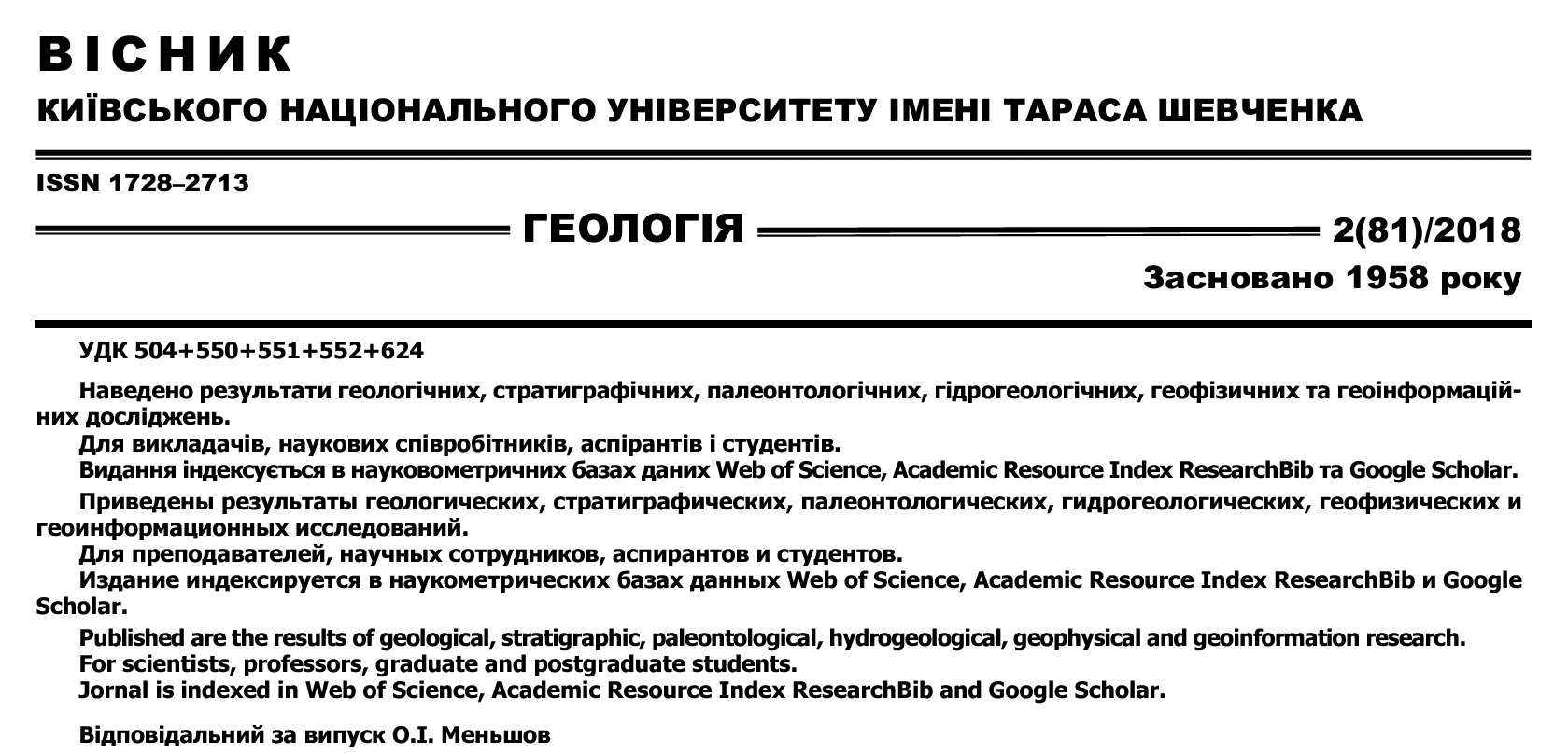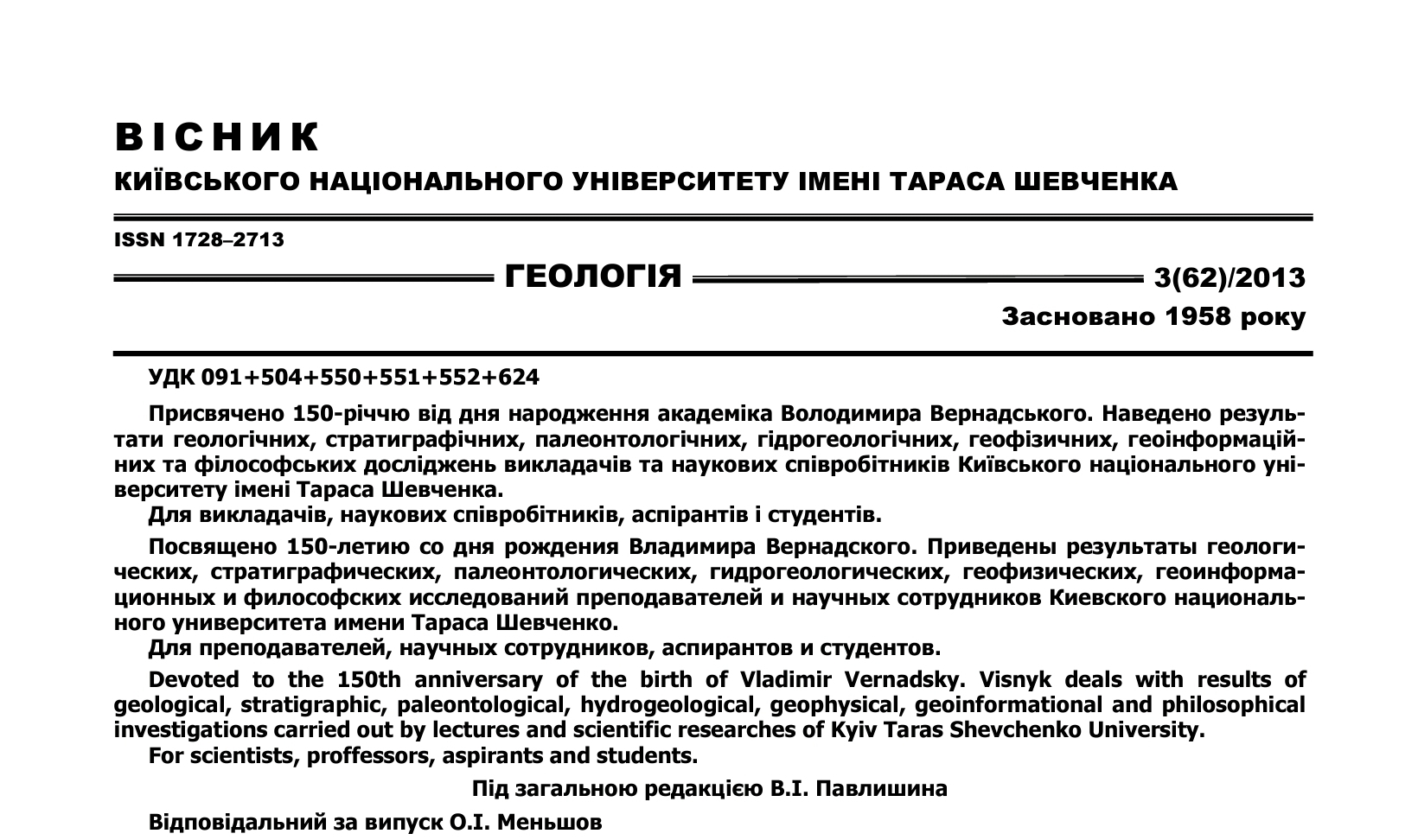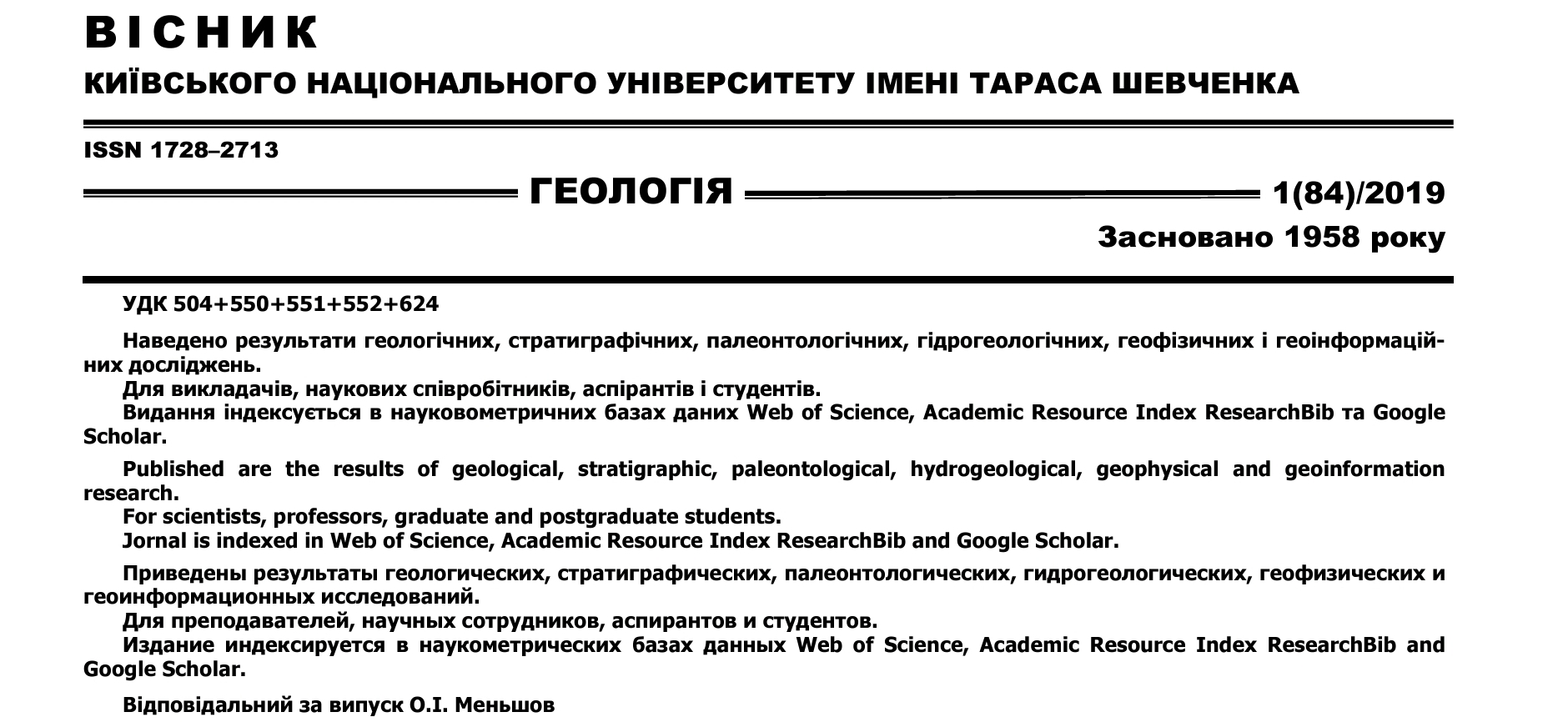 Вісник Київського національного університету імені Тараса Шевченка. Геологія