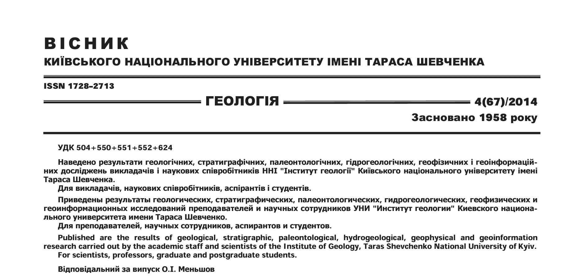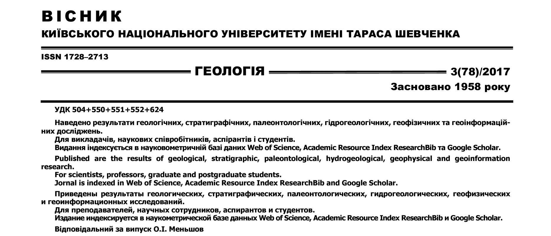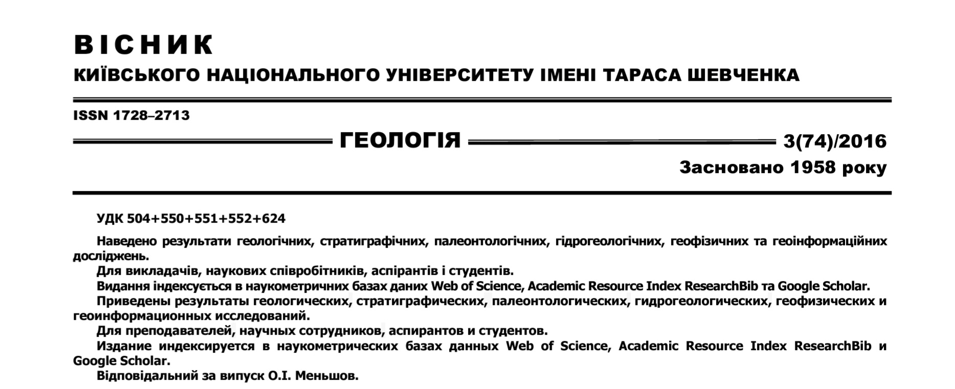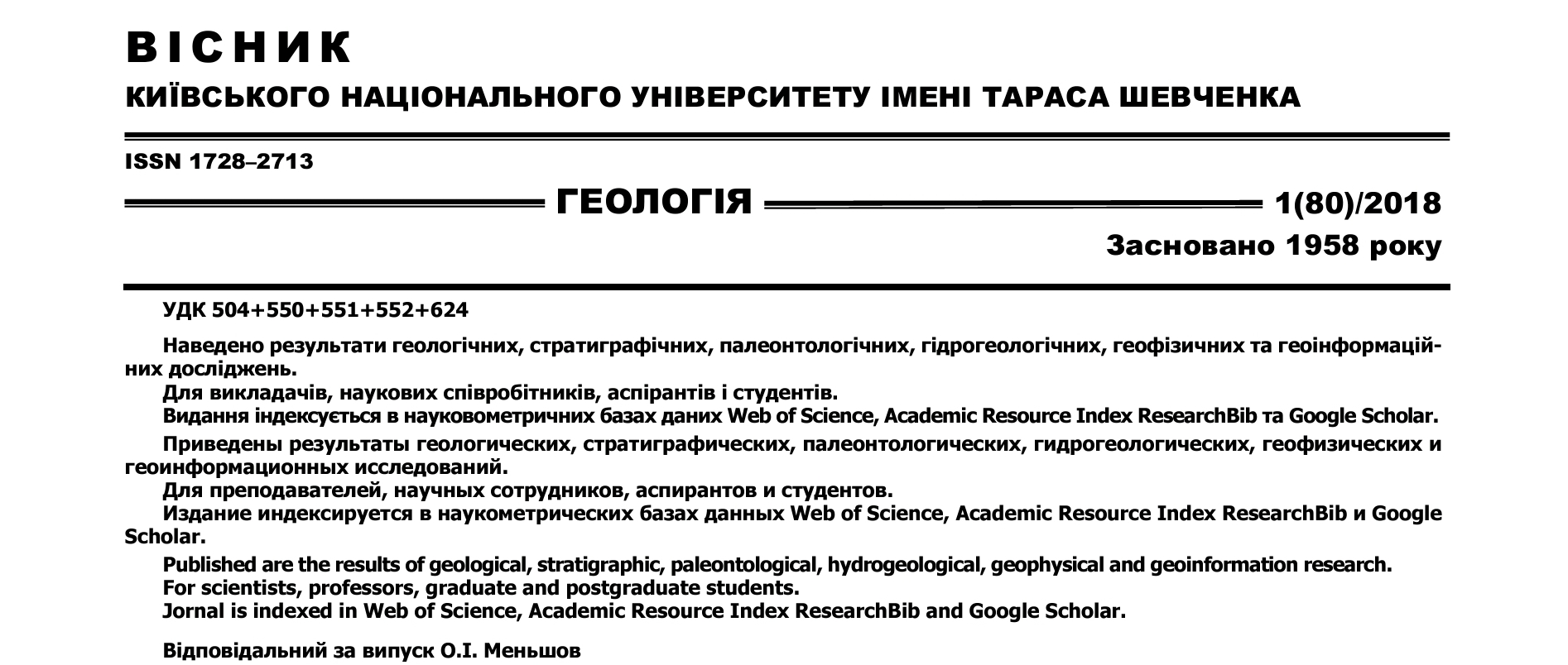 Вісник Київського національного університету імені Тараса Шевченка. Геологія