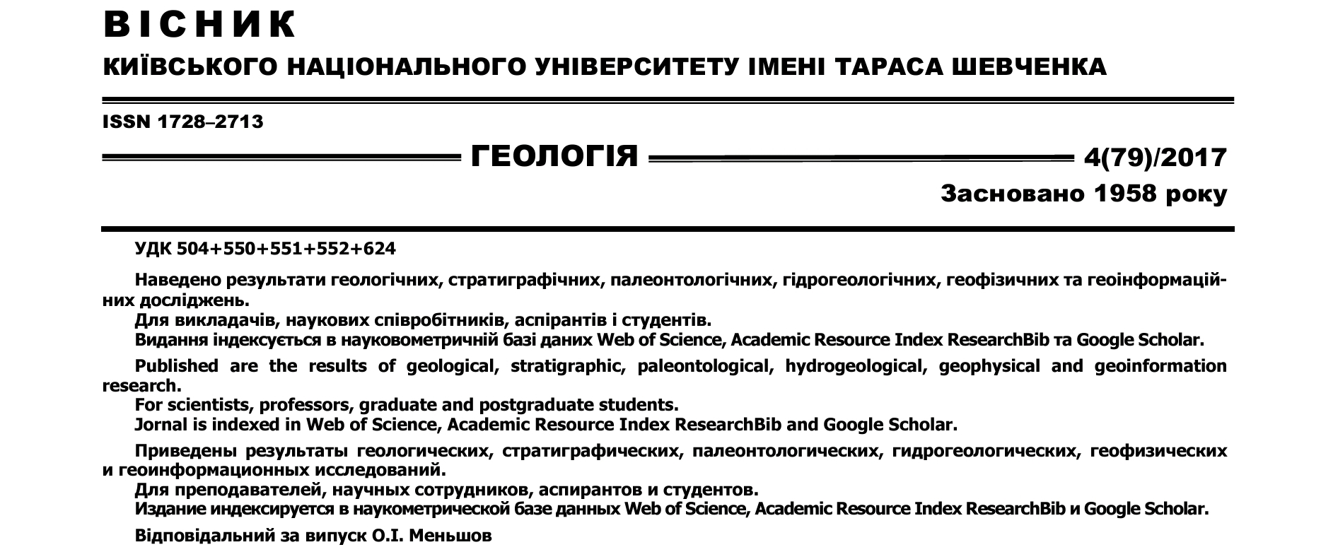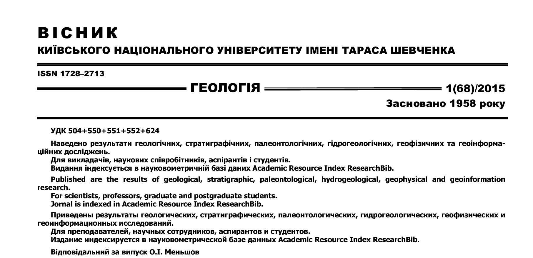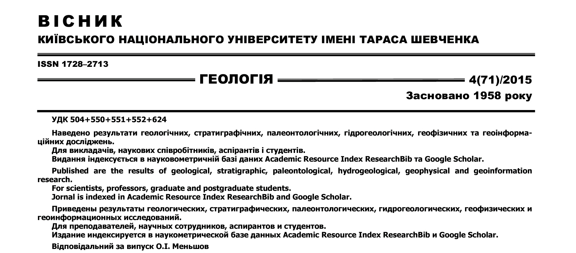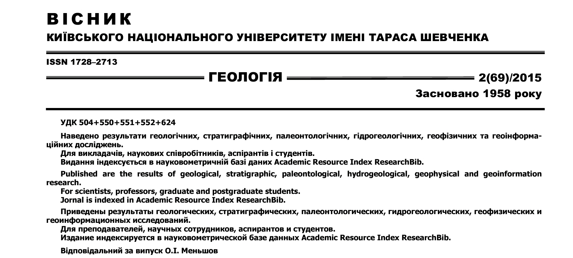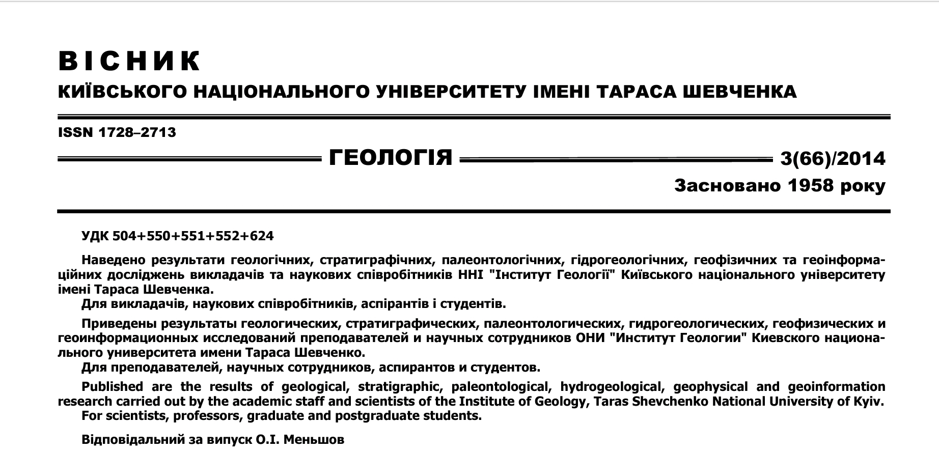 Вісник Київського національного університету імені Тараса Шевченка. Геологія