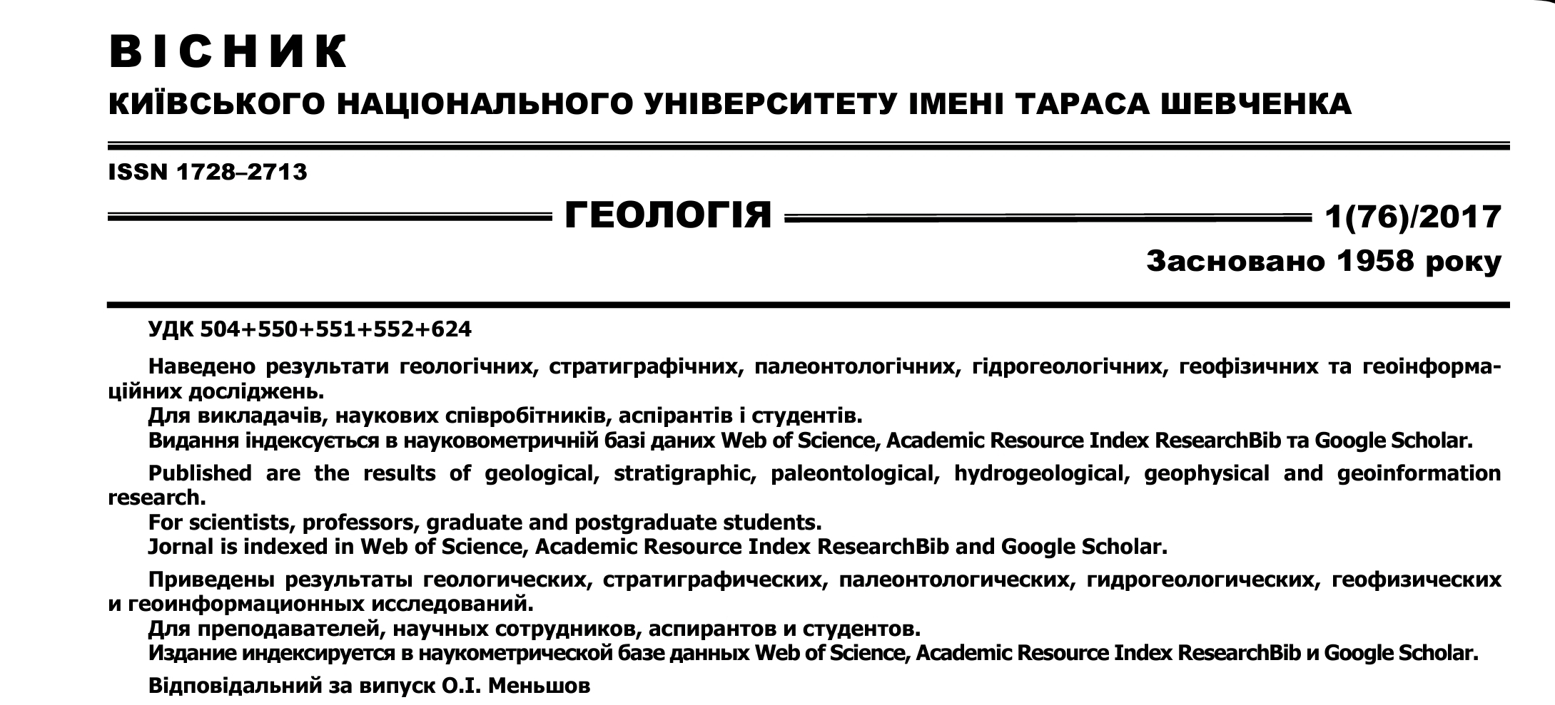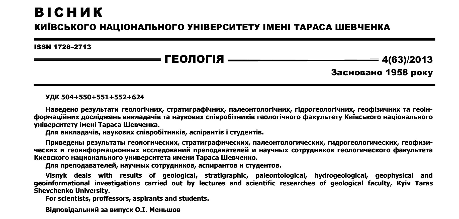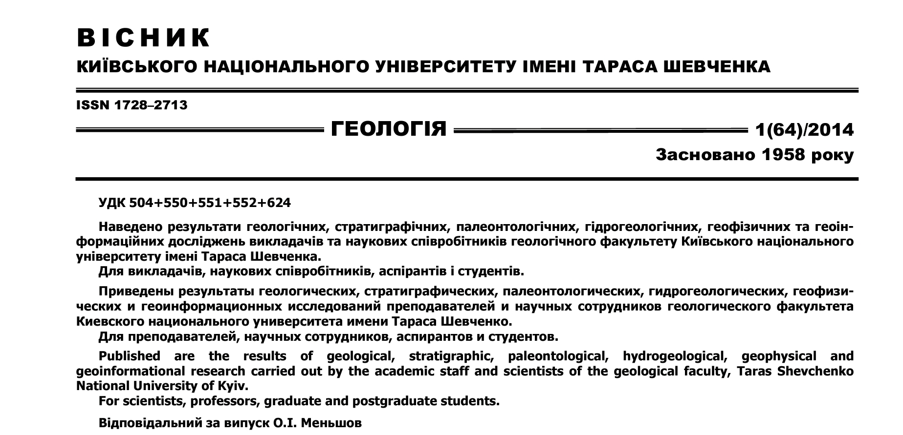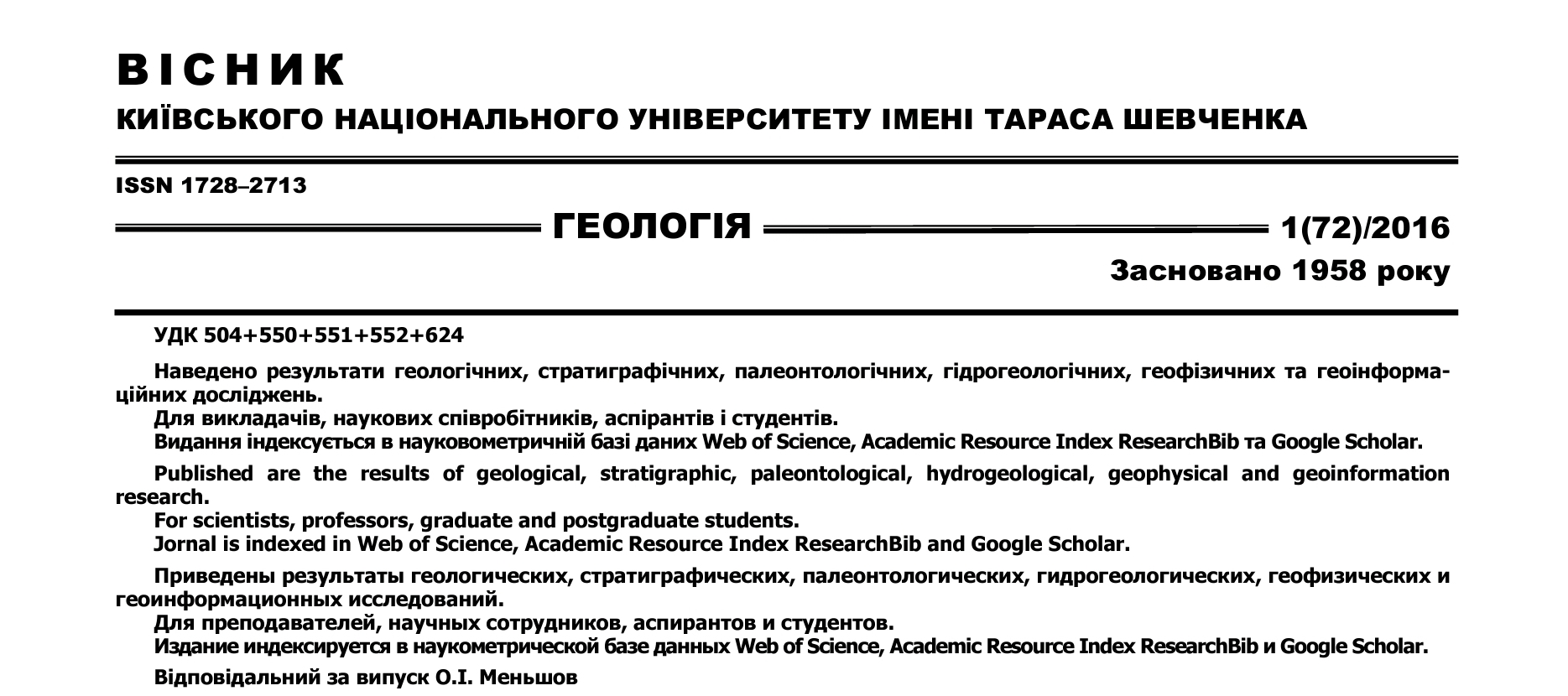 Вісник Київського національного університету імені Тараса Шевченка. Геологія